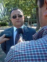Visita de Cáceres: Un pueblo caliente - Mientras una lluvia torrencial se desataba furiosa sobre Carmelo, el Ministro de Transporte y Obras Públicas visitó al ciudad para decir que no se necesita doble vía de acceso, que no es necesario reparar los engranajes del puente y menos que menos arreglarlo, y además no se necesita ningún tipo de cartelería turística. También dijo que el puente Castells aguanta mucho más peso sobre su vieja estructura y que no hay que hacerle caso al cartel que dice que el peso máximo permitido es de 12 mil kilogramos.